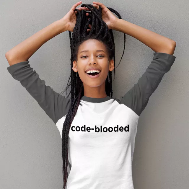 Code-Blooded Baseball T-Shirt is proudly made with 7x less water than average manufacturers, in recycle-friendly facilities that also guarantee zero sweatshop conditions. Geek Gift 3/4 Sleeve is designed and printed in California.