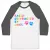 features raglan 3/4 sleeves and a modern fit that is perfect for a day