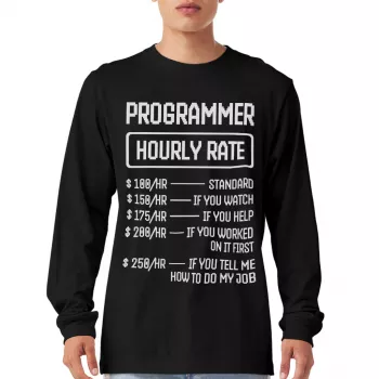Programmer Hourly Rate Long Sleeve T-Shirt – Web Developer T-Shirt – Coding Humor Basic Tee