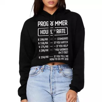 Programmer Hourly Rate Women’s Cropped Hoodie – Coding Humor Hooded Sweatshirt – Web Developer Super Crop Top Hoodies