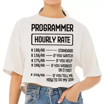 Programmer Hourly Rate Cropped T-Shirt – Web Developer Trendy Tee – Coding Humor Women’s Basic T-Shirt
