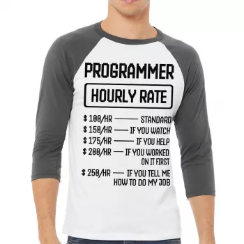 Programmer Hourly Rate Baseball T-Shirt – Coding Humor 3/4 Sleeve – Web Developer Raglan Jersey Shirt
