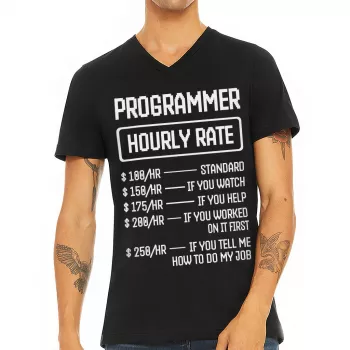 Programmer Hourly Rate V-Neck T-Shirt – Coding Humor Basic T-Shirt – Web Developer Tee