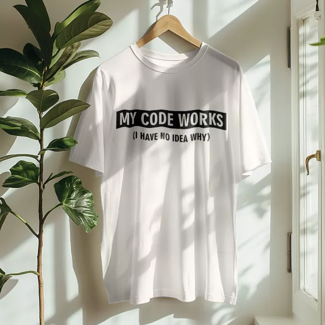 My Code Works T-Shirt is no ordinary piece of clothing. Its taped neck and shoulders, double-needle sleeve and bottom hems, and quarter-turned construction provide a retail fit for clothing that’s true to size. Computer Nerd Heavy Cotton Tee is Designed and printed in California.