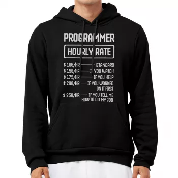 Programmer Hourly Rate Hoodie – Coding Humor Hooded Sweatshirt – Web Developer Unisex Hoodie