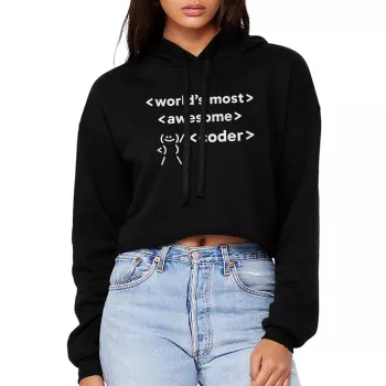 World’s Most Awesome Coder Women’s Cropped Hoodie – Computer Humor Hooded Sweatshirt – Programming Retro Super Crop Top Hoodies