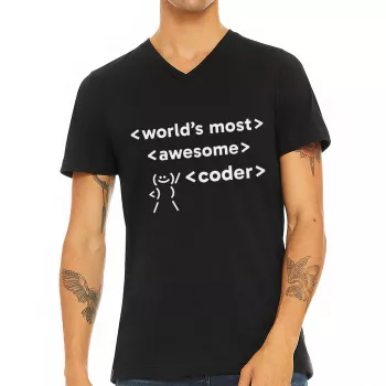 World’s Most Awesome Coder V-Neck T-Shirt – Computer Humor Basic T-Shirt – Programming Retro Tee