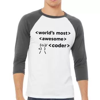 World’s Most Awesome Coder Baseball T-Shirt – Programming Retro 3/4 Sleeve – Computer Humor Raglan Jersey Shirt