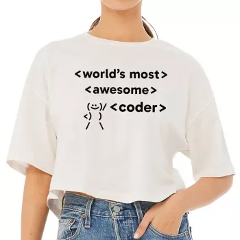World’s Most Awesome Coder Cropped T-Shirt – Computer Humor Trendy Tee – Programming Retro Women’s Basic T-Shirt