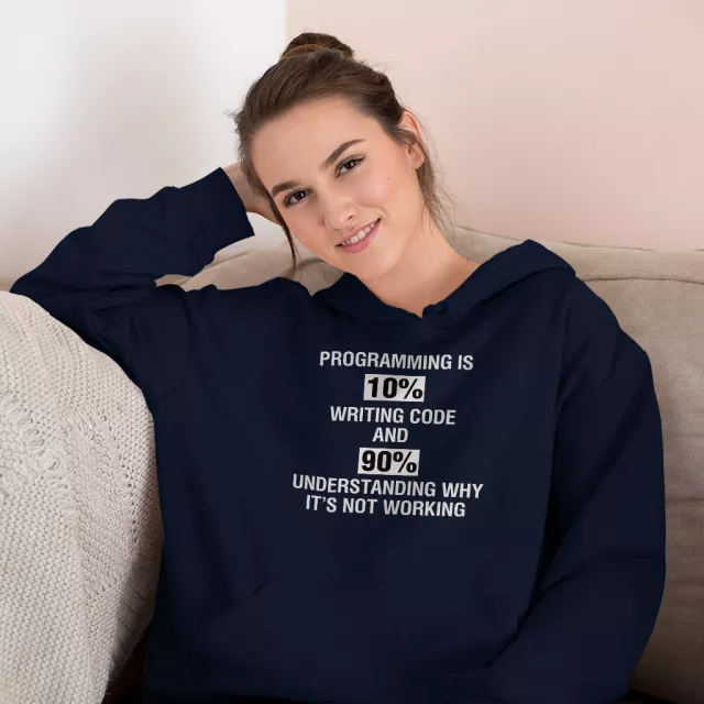Check out Programming Is 10% Writing Code Hoodie! This hoodie is perfect for those chilly days and