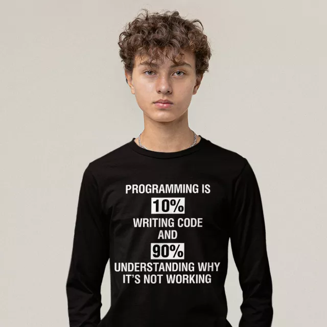 Programming Is 10% Writing Code Long Sleeve T-Shirt is proudly made with 7x less water than average manufacturers, in recycle-friendly facilities that also guarantee zero sweatshop conditions. Coding Is Kind If My Thing T-Shirt is designed and printed in California.