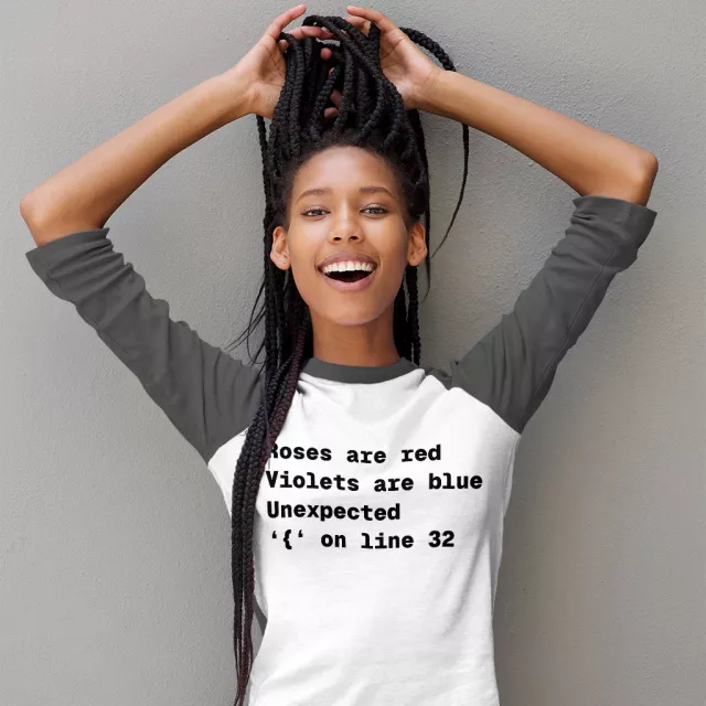 Roses Are Red Unexpected Baseball T-Shirt – Syntax Error 3/4 Sleeve – Gift for Developers Raglan Jersey Shirt