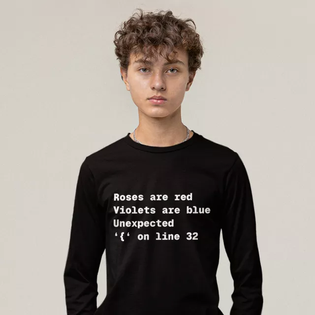 Roses Are Red Unexpected Long Sleeve T-Shirt is proudly made with 7x less water than average manufacturers, in recycle-friendly facilities that also guarantee zero sweatshop conditions. Syntax Error T-Shirt is designed and printed in California.