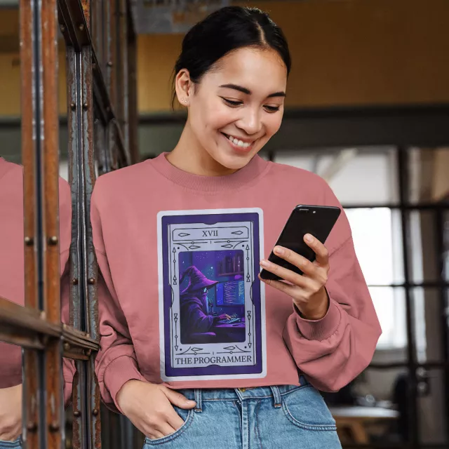 Get ready to make a statement in Coder Tarot Cropped Long Sleeve Sweatshirt! This stylish piece is perfect for showing off your unique style in an effortless and chic way. Made from a soft, breathable material that offers comfort while you look amazing, this t-shirt features a cropped body, dropped shoulder, raw hem, and side-seamed retail fit creating a modern silhouette with an edgy vibe. So add in a touch of fashion with Software Engineer Cropped Long Sleeve Sweatshirt!