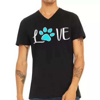 Paw Print Love V-Neck T-Shirt – Dog Paw Print Basic T-Shirt – Minimalist Pet Design Tee