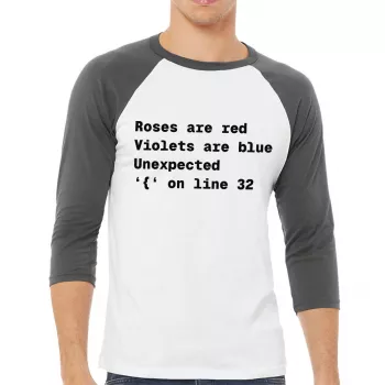 Roses Are Red Unexpected Baseball T-Shirt – Syntax Error 3/4 Sleeve – Gift for Developers Raglan Jersey Shirt