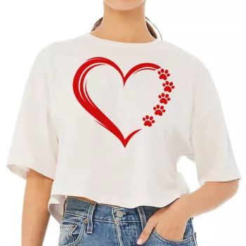 Heart Of Paw Print Cropped T-Shirt – Cute Paws Trendy Tee – Animal Lover Gift Women’s Basic T-Shirt