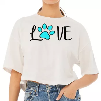 Paw Print Love Cropped T-Shirt – Minimalist Pet Design Trendy Tee – Dog Paw Print Women’s Basic T-Shirt