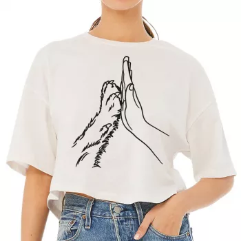 Hand and Paw Cropped T-Shirt – Dog Paw Trendy Tee – Dog Art Women’s Basic T-Shirt