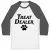 features raglan 3/4 sleeves and a modern fit that is perfect for a day