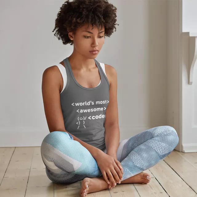 World’s Most Awesome Coder Racerback Tank is no ordinary piece of clothing. Its side-seamed detail and flatlock-finished hems provide a retail fit for clothing that’s true to size.